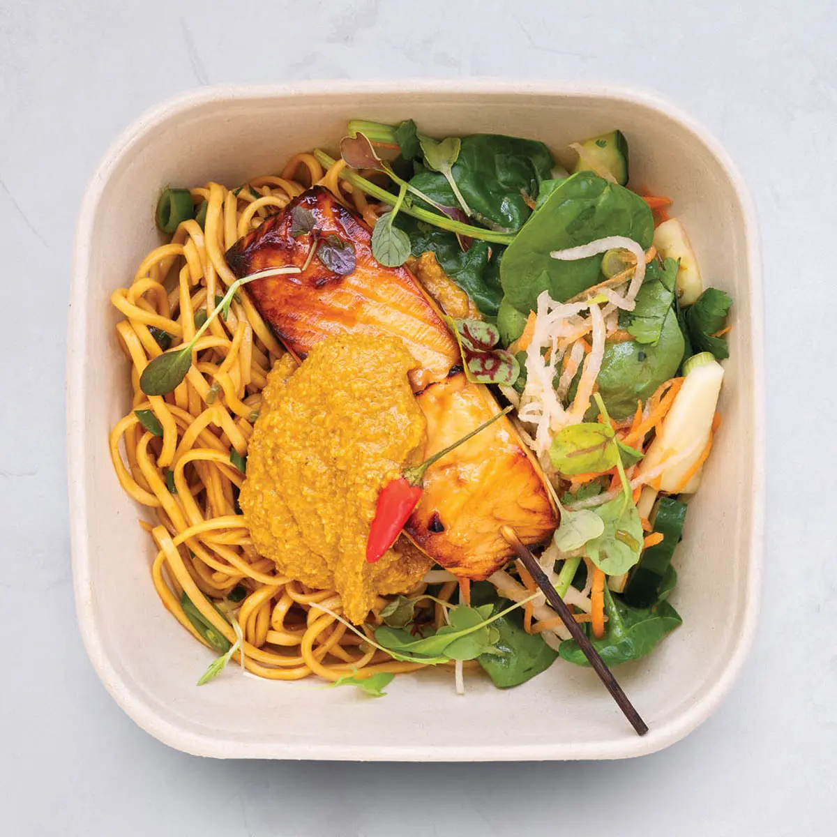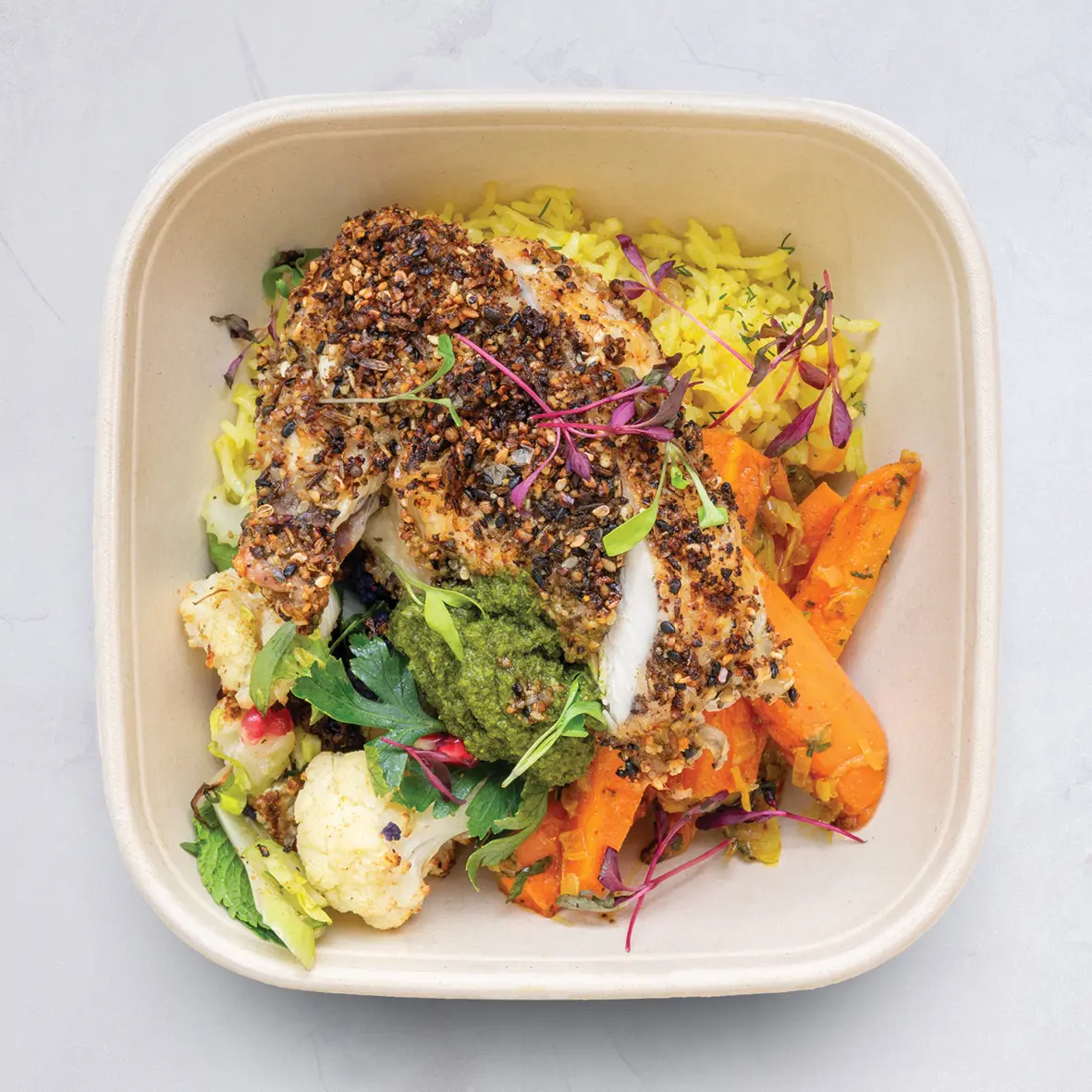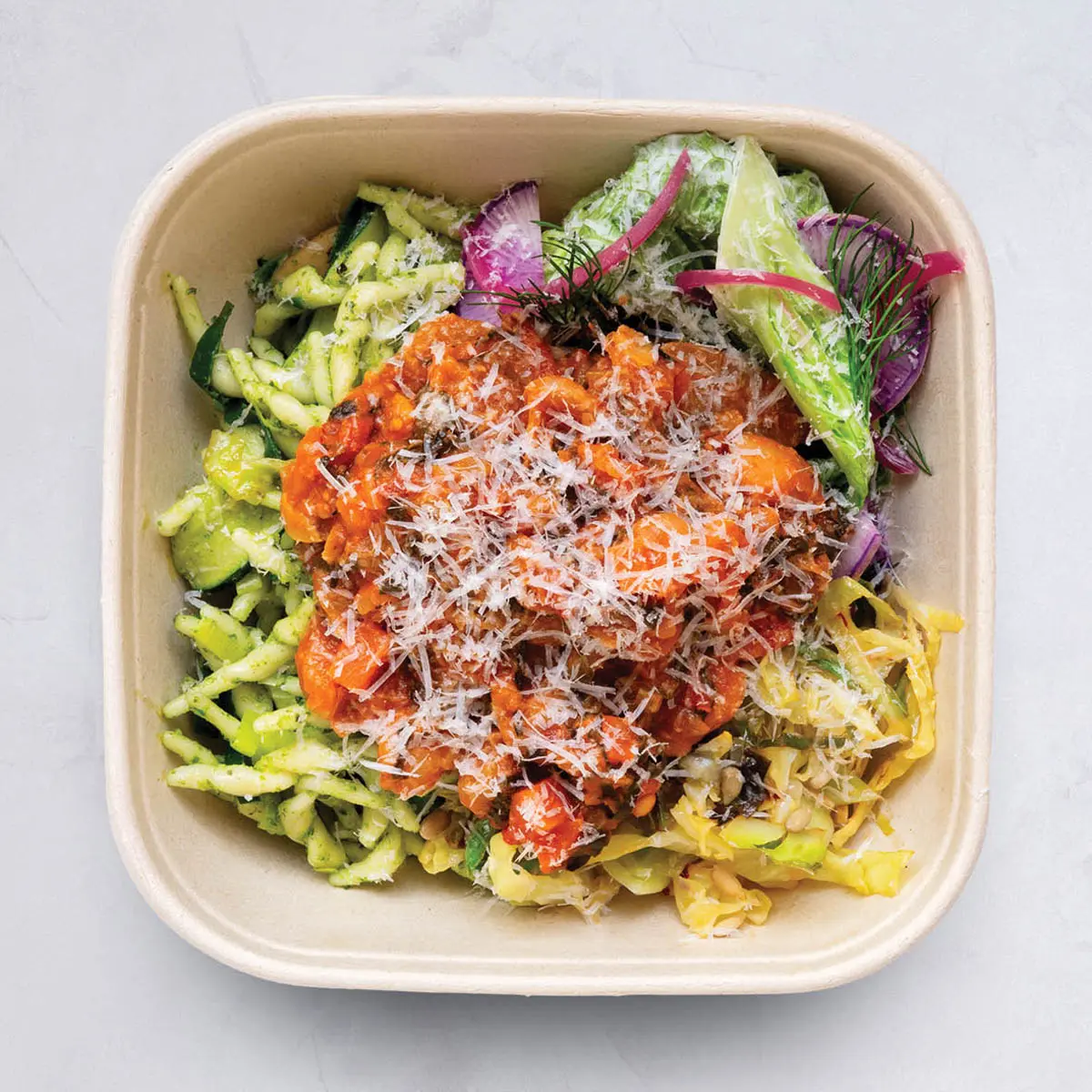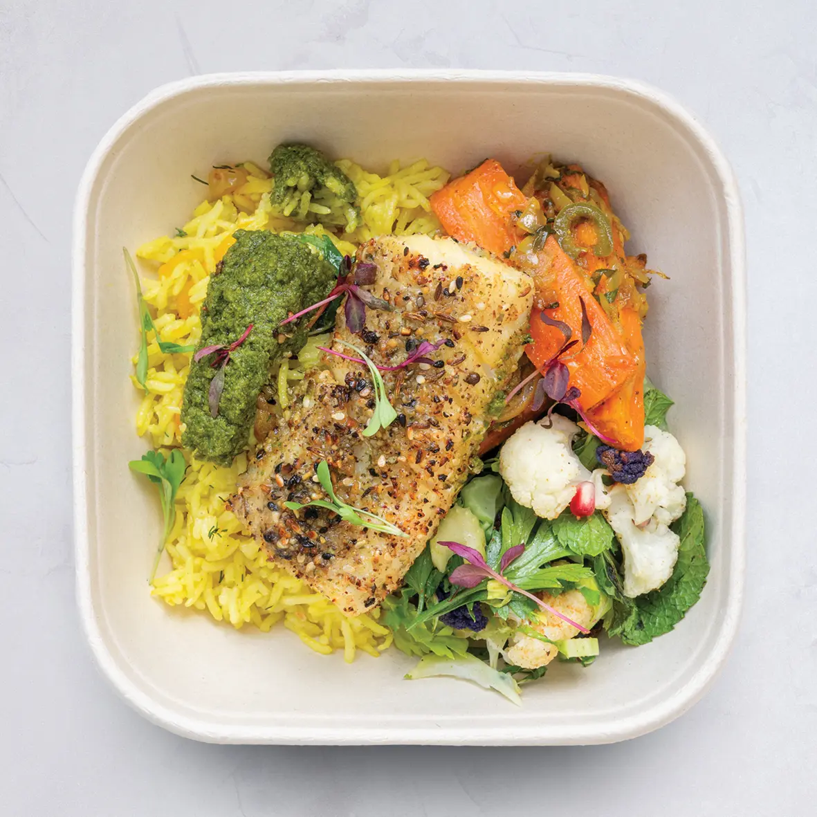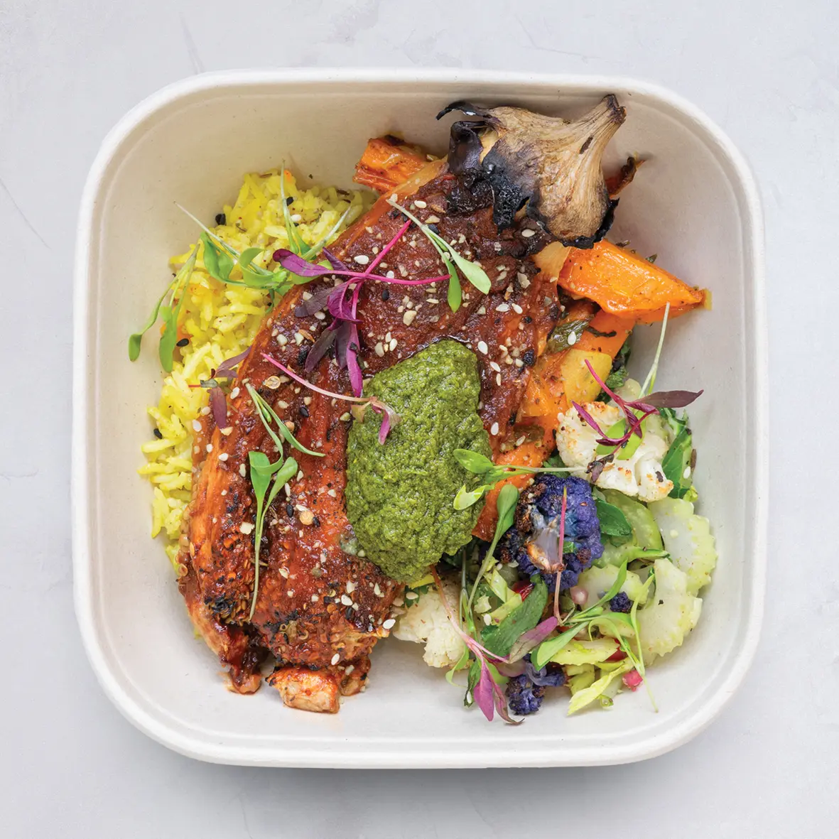 Can’t decide what to have for lunch? We offer a different lunch every day of the week. Choose a daily lunch box across a range of Carne, Pesce, Verde, and Vegan mains. All mains come with two or three sides. Always different each day of the week.